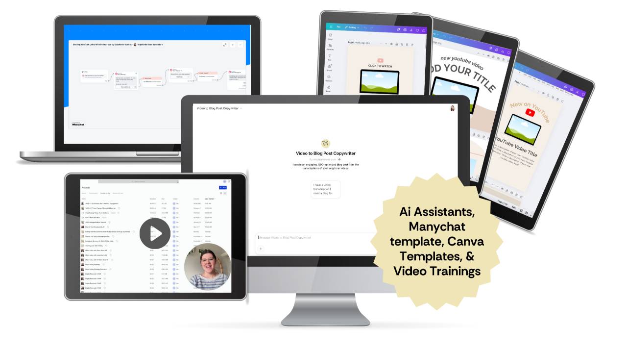 With done-for-you Canva templates for Instagram Stories, Pinterest, and email graphics, PLUS an automated ManyChat workflow with follow-up steps, you can effortlessly promote your videos without reinventing the wheel.